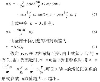 假設(shè)所有的干擾信號(hào)都被認(rèn)為是正弦波,并且Yδ(t)=ysint,并且它在第7次運(yùn)行的周期是n,那么? =2π/T 代入式(4)得到: